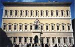 Il superbo palazzo Farnese, nella piazza omonima, fu iniziato sotto il pontificato Paolo III da Antonio da Sangallo il Giovane (1514), continuato da Michelangelo (1546) - cui si devono il meraviglioso cornicione, la finestra centrale della facciata e parte del cortile - e completato nel 1589 da Giacomo della Porta. Questo maestoso monumento nazionale fu ceduto nel 1908 alla Francia che già vi aveva la propria Ambasciata.