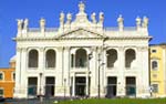 San Giovanni in Laterano, cattedrale di Roma, fu fondata da Costantino col titolo di «Basilica del Salvatore», sotto il pontificato di San Silvestro (314-335). Fu più volte distrutta e riedificata. Il LATERANO fu la residenza dei papi fino al 1309, quando da Roma si trasferirono ad Avignone. Il loro palazzo, Patriarchio, fu distrutto nel 1586 da Domenico Fontana, per ordine di Sisto V, che fece costruire l’attuale edificio. Nell’angolo di destra di Piazza San Giovanni è il Battistero. Fu eretto da Costantino dove, secondo una tradizione errata, egli avrebbe ricevuto il battesimo da San Silvestro. Fu rifatto poi da Sisto III (432-440) e fu in seguito restaurato più volte. é una costruzione ottagonale, con otto colonne di porfido che sostengono la cornice, mentre altre otto, di marmo, sostengono la cupola. Nel lato a sinistra della piazza sorge l’edificio della Scala Santa. Secondo la tradizione sarebbe la stessa che Gesù salì nella casa di Pilato, portata a Roma dall’imperatrice Elena. I ventotto gradini si possono salire soltanto in ginocchio. In cima alla scala è la cappella privata dei papi del vecchio Patriarchio, chiamata Sancta Sanctorum, riccamente decorata dai Cosmati nel 1278. Ai lati della scalinata sono collocati due gruppi di Iacometti: il Bacio di Giuda e Pilato che mostra Cristo al popolo (1854).