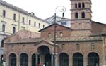 S. Maria in Cosmedin, una delle gemme della Roma medioevale, sorse sulle rovine dell’Ara massima di Ercole, della quale sono visibili alcuni resti nella cripta della chiesa. L’interno austero, ci dà una chiara idea di chiesa primitiva (VIII sec.). A destra l’elegante campanile, di stile romanico è del sec. XII. A sinistra del portico si conserva una maschera in marmo, chiamata Bocca della verita'. La leggenda dice che i bugiardi che mettono la mano in questa bocca, ne escono monchi. Si tratta in effetti di un chiusino della Cloaca Massima.
