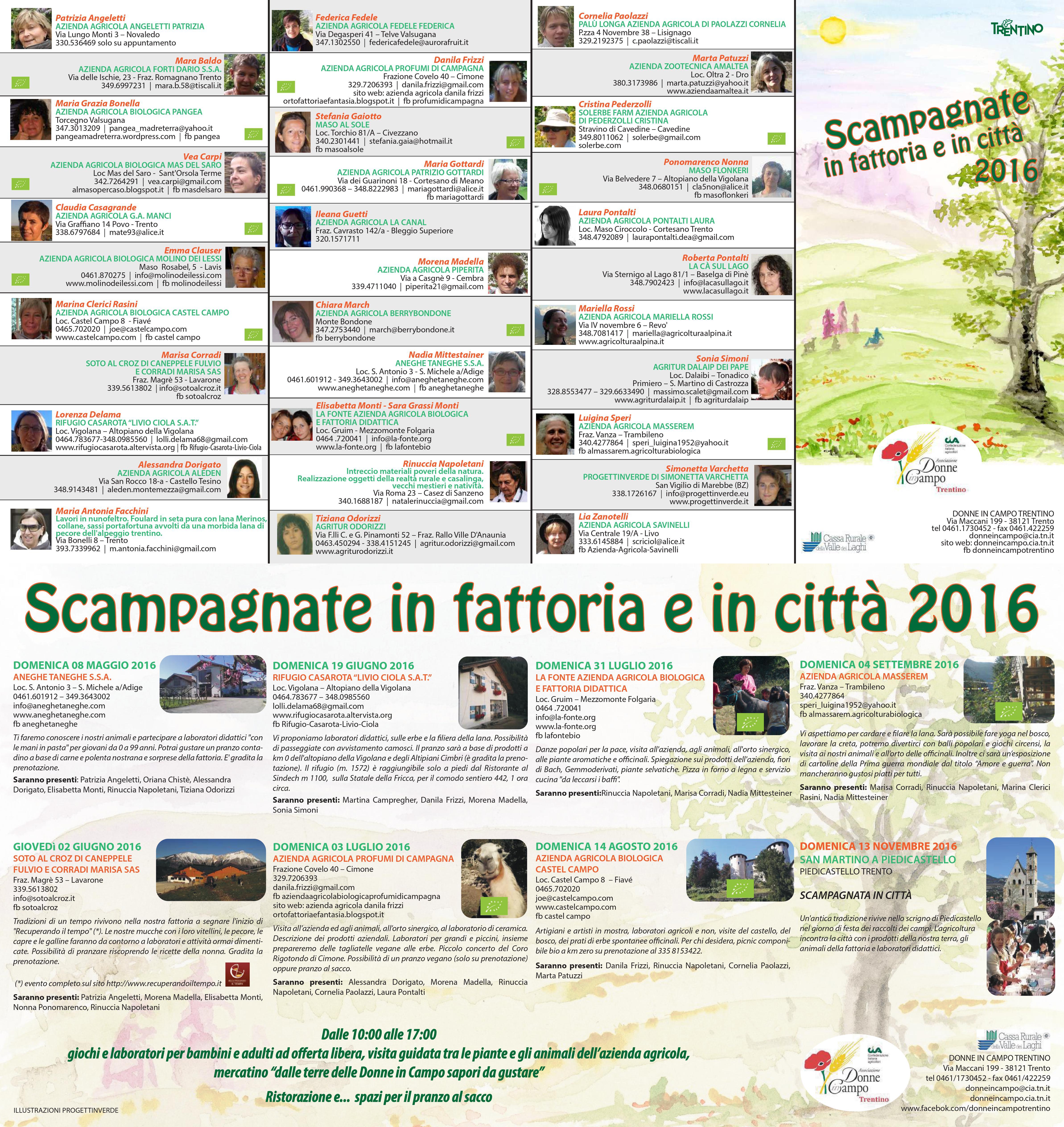 LA FONTE AZIENDA AGRICOLA BIOLOGICA E FATTORIA DIDATTICA Danze popolari per la pace, visita all'azienda, agli animali, all'orto sinergico, alle piante aromatiche e officinali. Spiegazione sui prodotti dell'azienda, Fiori di Bach, Gemmoderivati, piante selvatiche. Pizza in forno a legna e servizio Saranno presenti: Rinuccia Napoletani, Marisa Corradi, Nadia Mittesteiner |