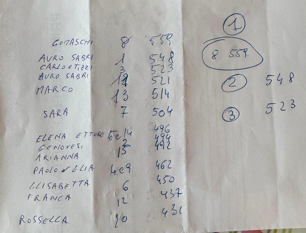 2025 14 ° TROFEO TORTA DELLE ROSE ALTISSIMO LIVELLO IN QUESTA EDIZIONE Ma alle fine la numero 8 dei Comaschi - Marisa, Alessandro, Sara, Ilaria e Alberto - l'ha spuntata, con un vantaggio di soli 11 punti. Al secondo posto le campionesse uscenti Aurora e Sabrina con la 1. Poi, finalmente sul podio, Tiziana e Carlo con la numero 3. Come innovazione segnaliamo la torta di Nicolò, Ettore e Maurizio, la numero 14, forse penalizzata proprio dalla glassa, perchè come forma era perfetta e il sapore eccezionale (conteneva vaniglia balinese e cream-cheese). La seconda torta delle campionesse, la 11, ha proposto dei boccioli ingranditi, mentre Elia ha portato la n.9, torta rettangolare. Ma quest'anno le torte che si sono contese il primo posto erano parecchie, basta leggere le differenze della classifica (poche decine di punti). I collegamenti Le torte di quest'anno