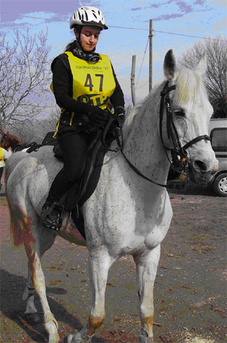 ![]() Le guide del gruppo da Monteriggioni a Verona Mirella, nasce in dicembre nel 1961 è Operatore Tecnico di Equitazione di Campagna e Endurance FISE condivide con Alfredo la passione per i cavalli Arabi, per l’insegnamento dell’equitazione soprattutto ai bambini con pony nati da madre Shetland e padre Arabo e per i lunghi viaggi. Mirella accompagna Alfredo in questo viaggio in sella a Bandolero, un arabo grigio di 14 anni, da Monteriggioni (Si) a Sasso Marconi (Bo) e in sella a Sheena da Sasso Marconi(Bo) a Verona. |