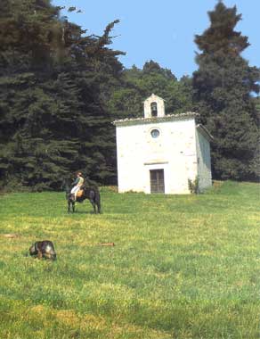 Ieri all’arrivo la stanchezza era forte ed anche la preoccupazione per il lungo percorso che ancora ci attende. Riusciremo tutti a reggere questo ritmo cavalcando e lavorando per tante ore? Sarà stato sufficiente l’allenamento? Ma questa mattina è tutto pronto e c’è anche un gruppo di abitanti del paese a cavallo pronti ad accompagnarci per un tratto. Passiamo attraverso S.Croce di Magliano e ci sembra che tutti gli abitanti siano venuti a salutarci. Per questa seconda giornata la méta è Centocelle. Siamo appena usciti dal paese, getto lo sguardo verso valle e… provo immediatamente come un senso di grande respiro, vedendo il grande fiume d’erba: è il tratturo Celano-Foggia (ribattezzato il tratturo del teatro sannitico e delle riserve MAB, per via del complesso archeologico di Pietrabbondante e per le riserve selezionate dall’Unesco, che troveremo più avanti). Una volta questo tratturo partiva dal Lago di Celano (ora piana del Fucino) e raggiungeva Foggia dopo 207 chilometri; serviva l'Abruzzo medio orientale attraversando la parte più alta e aspra del Molise, per oltre 84 chilometri. Ma per ora, nel nostro programma, è previsto di seguire il Celano-Foggia solamente fino a Centocelle, dove faremo tappa questa sera. All’altezza di S. Giuliano di Puglia, quindi, vi è il primo vero impatto con il tratturo, che rafforza in me l’intenzione di denunciare gli abusi che si sono fatti in passato a danno dei tratturi, perché queste strade sono di tutti e questo patrimonio merita di essere salvato, valorizzato e tutelato in qualche modo(*vedi nota a foindo pagina), per soddisfare anche una domanda di turismo verde che può contribuire al rilancio dell’agricoltura del Molise. Incontriamo un pastore con le sue pecore ed iniziamo a girare. |