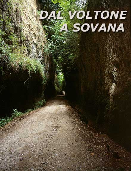 Vie verdi, Tagliate, Tratturi I centri abitati di questo territorio erano molto importanti nell'antica Etruria. Ne sono una suggestiva testimonianza le strade che li univano. Sono le "vie cave" , scavate direttamente nel tufo. La loro profondità serviva a renderle più pianeggianti e a proteggere i viandanti dalle intemperie. Formavano un sistema viario ben organizzato, tramite il quale si potevano svolgere più rapidamente sia gli scambi commerciali che le funzioni amministrative; vennero utilizzate a partire dal VII secolo a.C. fino al Medioevo. La via più grande, chiamata “Cavone”, è utilizzata ancora oggi dagli agricoltori della zona. Su una delle pareti, ad un'altezza di circa 3 metri e ad intervalli di 50-100 metri, ci sono piccole nicchie nelle quali si intravedono tracce di affreschi: si tratta di tabernacoli medioevali e di immagini sacre che dovevano proteggere i viandanti dal demonio che, secondo una leggenda, imperversava lungo questa strada. la nostra sosta per cavalli e cavalieri |