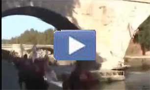 Quando è nata l’idea di questo viaggio, appoggiato da tante associazioni (delle quali sono stati selezionati solo dieci cavalieri, ai quali si aggiungerà ogni volta un undicesimo), per la partenza si era pensato a un luogo simbolo della capitale, il Colosseo. Ma, alla fine, la scelta è andata, come si è detto, nel modo secondo noi più corretto. Lungo un fiume, indispensabile per i viaggi a cavallo, anche se oggi meno pittoresco di una volta, è un'altra cosa. Viaggiamo sull'argine del fiume e parliamo con due ospiti di eccezione: il Presidente della Fitetrec Ante Lazio, Alessandro Silvestri, e Sandro Vannucci, storico giornalista Rai di Linea verde. Un viaggio, fatto come si faceva una volta, non può prescindere dall'acqua. Sui fiumi sono nate tutte le civiltà. I cavalieri passano proprio da questo incrocio del Velabro che ha forgiato la civiltà e, non senza qualche problema sulla pista ciclabile, si dirige verso il Parco di Veio, dove il primo gruppo di amici delle vie verdi ha già più volte percorso la strava verde che collega Roma con la sua campagna.