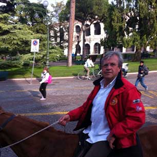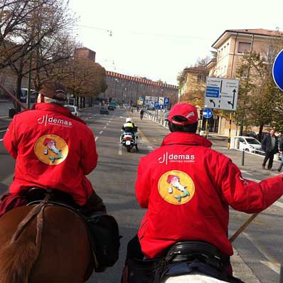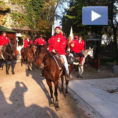 Arrivo alla 114.ma Fieracavalli 2012. Partiti il 20 ottobre da Roma. Percorsi oltre 650 chilometri.